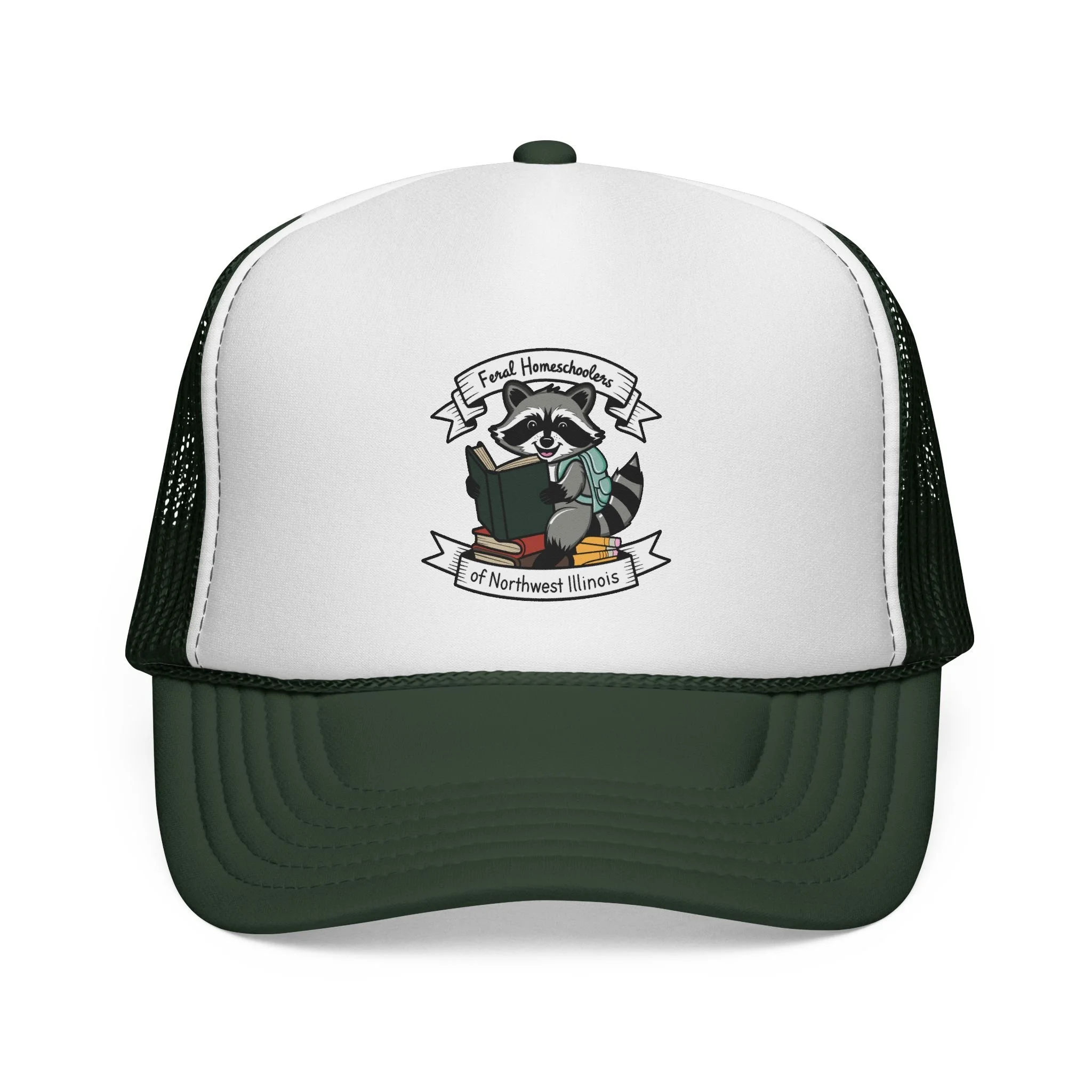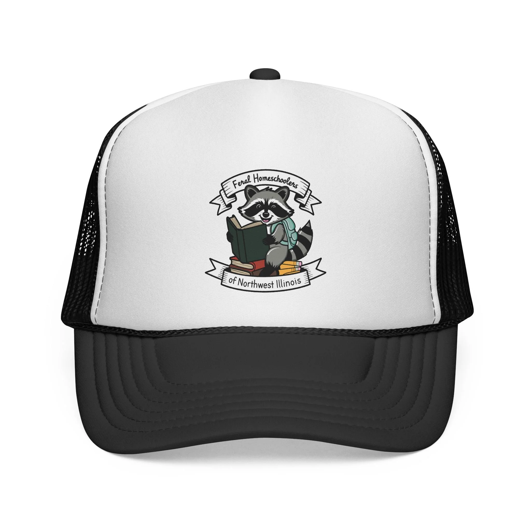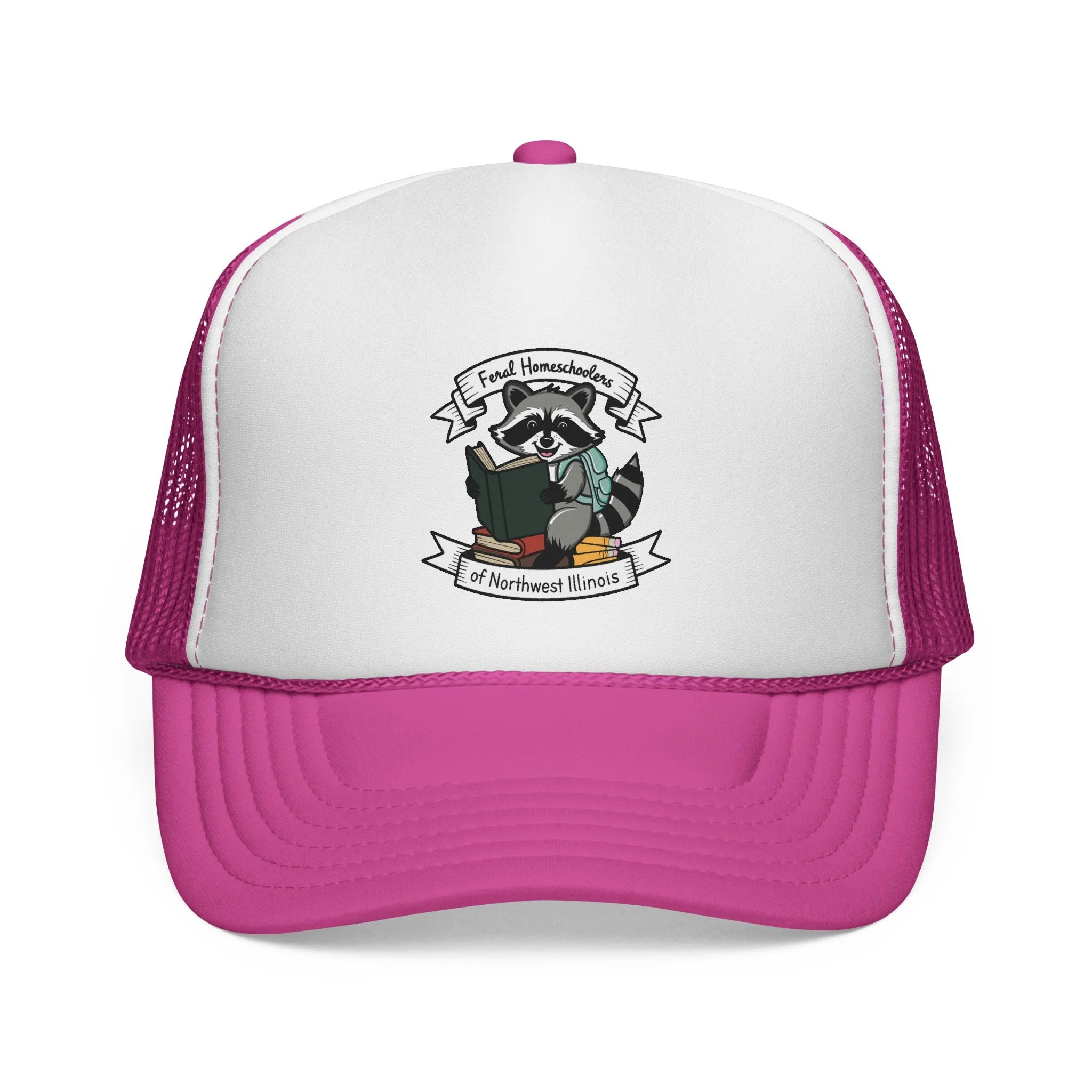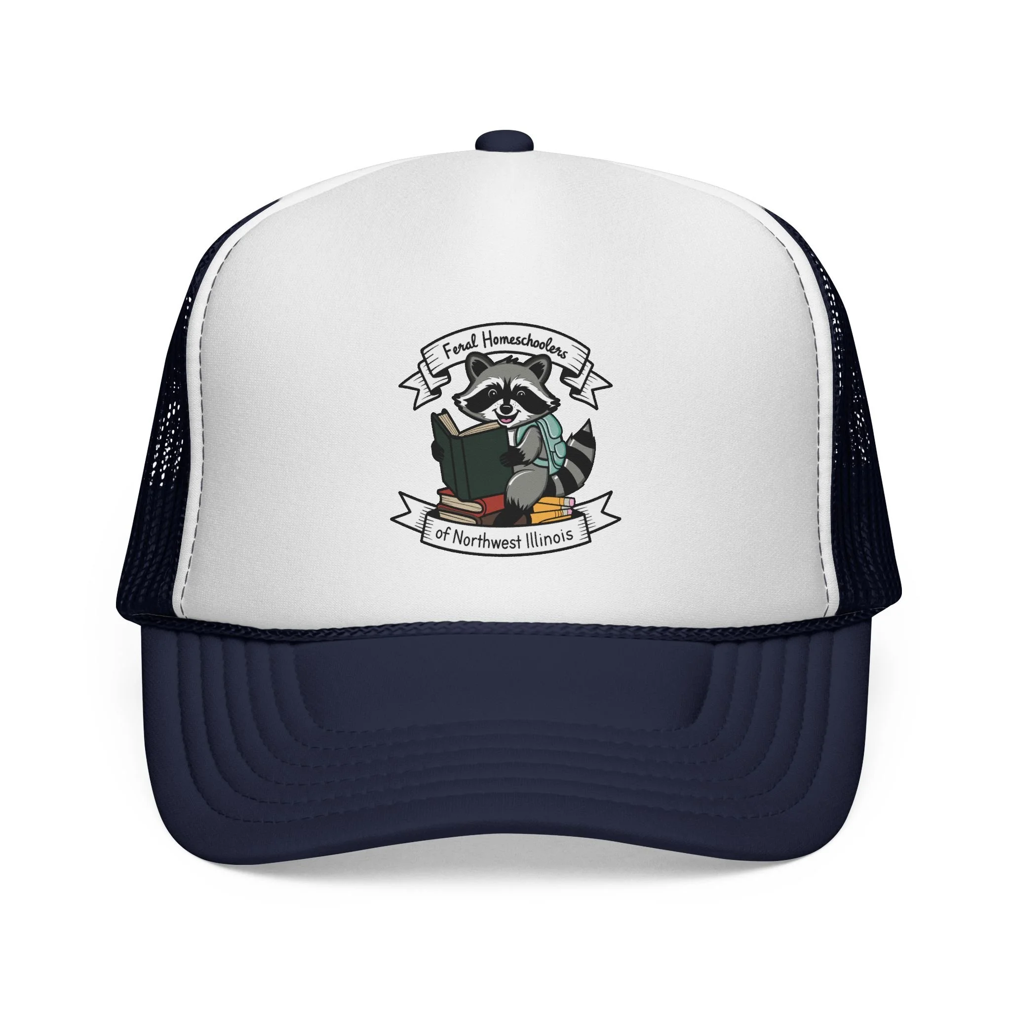 A lightweight, retro trucker cap featuring a playful raccoon reading a book illustration — small, crisp, and brimming with quiet charm. The structured foam front holds the printed artwork clearly, while the breathable mesh back keeps your head cool on long drives, nature walks, or study sessions at the park. Adjustable snap closure ensures a reliable fit; colors are vivid and color-matched across the visor, sweatband, and braid for a cohesive, polished look. Wear it when you want a touch of whimsical wit and outdoorsy comfort that blends into everyday adventures.